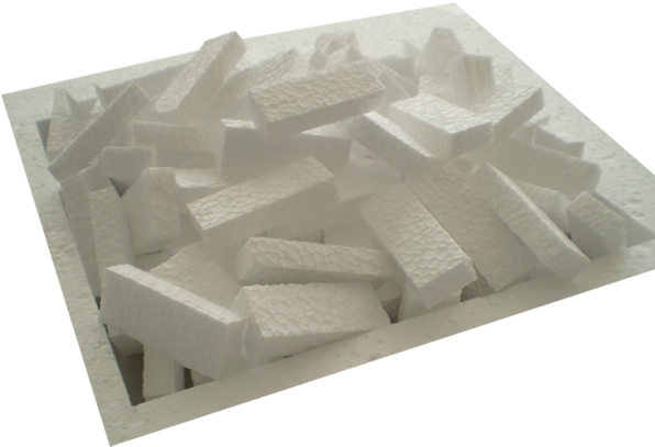 Stiropor za pakiranje je proizvod koji čine male pločice stiropora (cca 4 x 2 x 1 cm). Koristi se za oblaganje osjetljive robe pri pakiranju. Isporučuje se u vrećama od 500 litara. Stiropor je teško zapaljiv tj. ne podržava gorenje (Eurorazred E) te nije štetan po ljudsko zdravlje i okoliš.